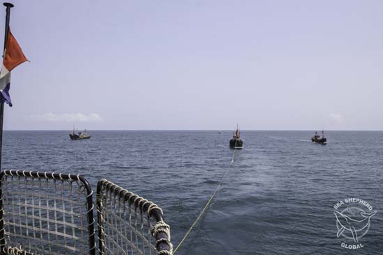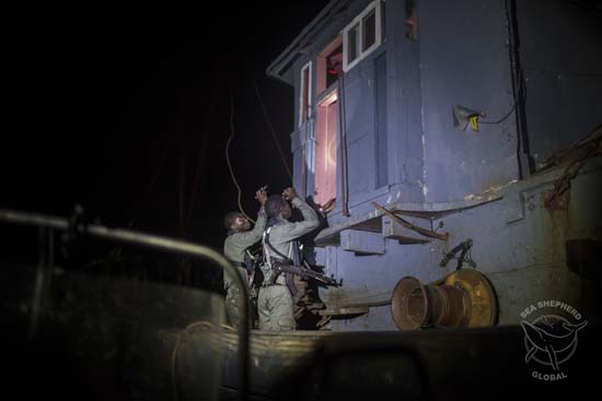 Terwijl Gabonese ambtenaren aan boord gingen van de eerste vistrawler en deze overmeesterden, bleef de bemanning van Sea Shepherd langszij, verlichtte de dekken van het schip en documenteerde haar activiteiten. Daarna volgde het tweede en het derde illegale schip, waarvan er één 8 knopen voer op het moment dat het werd geënterd. Alle drie de schepen zijn overgedragen aan de autoriteiten van Gabon voor verder onderzoek en om de nodige juridische procedures te beginnen.”